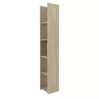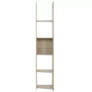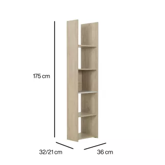Structure : panneaux de particules revêtus papier imitation Châtaignier naturel et mélamine Grège, chants mêmes finitions. 5 tablettes. Réversibilité gauche/droite.