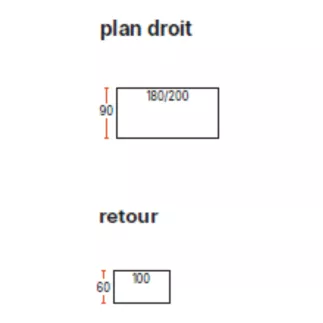 - Plateau droit: L 180/200 x p 90 x H 74 cm