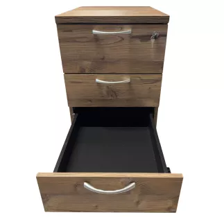 Caisson: 3 tiroirs A6/serrure et clefs/décor Timber - poignées gris aluminium