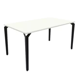 Matière: Plateaux mélaminé avec 2 opercules intégrés ø 8 cm (blancs pour piètements blancs, noirs pour piètement sauge, pêche, crème et noir)/Pieds métallique