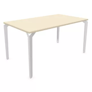 Matière: Plateaux mélaminé avec 2 opercules intégrés ø 8 cm (blancs pour piètements blancs, noirs pour piètement sauge, pêche, crème et noir)/Pieds métallique