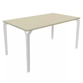 Matière: Plateaux mélaminé avec 2 opercules intégrés ø 8 cm (blancs pour piètements blancs, noirs pour piètement sauge, pêche, crème et noir)/Pieds métallique