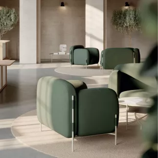 "Un canapé d’accueil qui allie design iconique et confort enveloppant."
