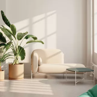 "Un canapé d’accueil qui allie design iconique et confort enveloppant."