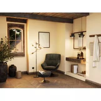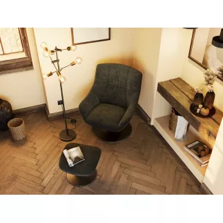 Le fauteuil Bilbao est un incontournable à avoir dans son intérieur. Son design moderne et élégant apporte une touche contemporaine qui s’adapte à tous les styles de décoration. Son épais rembourrage, recouvert d’un tissu résistant aux frottements et au boulochage, garantit confort et durabilité. Ce fauteuil mesure 79 cm de largeur, 92 cm de profondeur et 98 cm de hauteur, il s’impose comme une pièce à la fois pratique et esthétique. Son piétement en acier laqué noir complète parfaitement son allure sophistiquée. Le fauteuil Bilbao est livré avec un repose-pied assorti, idéal pour vos moments de détente. Son assise est pivotante à 360°.