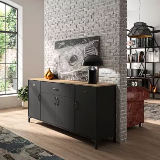 DESIGNATION: Structure en panneaux de particules revêtus papier uni Noir et imitation Chêne Helvezia.
