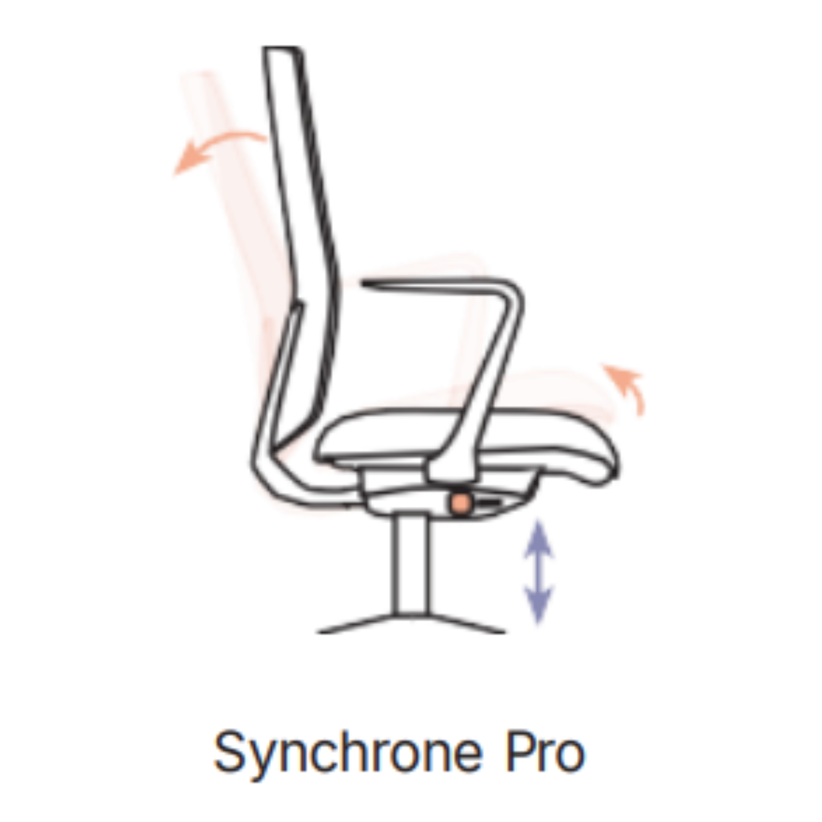 Mécanique : Synchrone Pro – jusqu’à 5 positions verrouillables et réglage de la résistance au basculement vers l’arrière