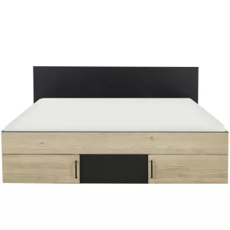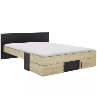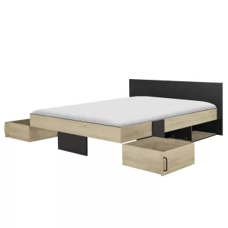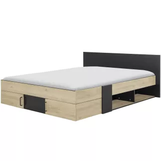 SWIVEL│Lit adultes rangements│160x200 cm│Châtaignier naturel-Noir