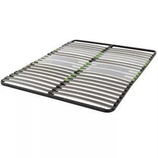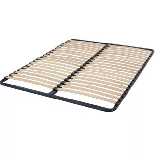 20 lattes: Cadre 20 lattes en bois multipli FSC 53 x 8 mm. Structure acier 30x30 mm. peinture epoxy bleu nuit. Traverse centrale 50x30mm en double couchage. Perçage pieds inclus. A partir de 120, le cadre est équipé d'un pied central