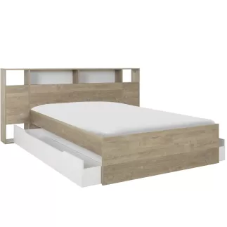 Couchage 140x190 en chêne naturel et blanc