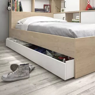 ERWAN│Lit enfant rangements│90x200 cm│Châtaignier naturel