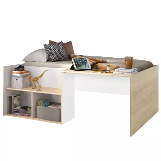 Comprend 1 couchage pour literie 90x190, 1 rangement 2 niches, 1 plateau de bureau.