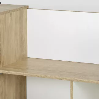 DESIGNATION: Structure : panneaux de particules revêtus papier imitation Châtaignier naturel et uni Blanc, chants minces mêmes finitions.