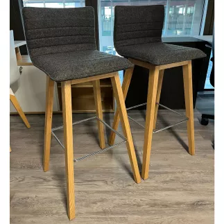"Les tabourets Evasion sont robustes avec une assise confortable, un entretien facile et une poignée intégrée au dossier pour une meilleure prise en main, le subtil mélange des matières leur donne un aspect élancé"