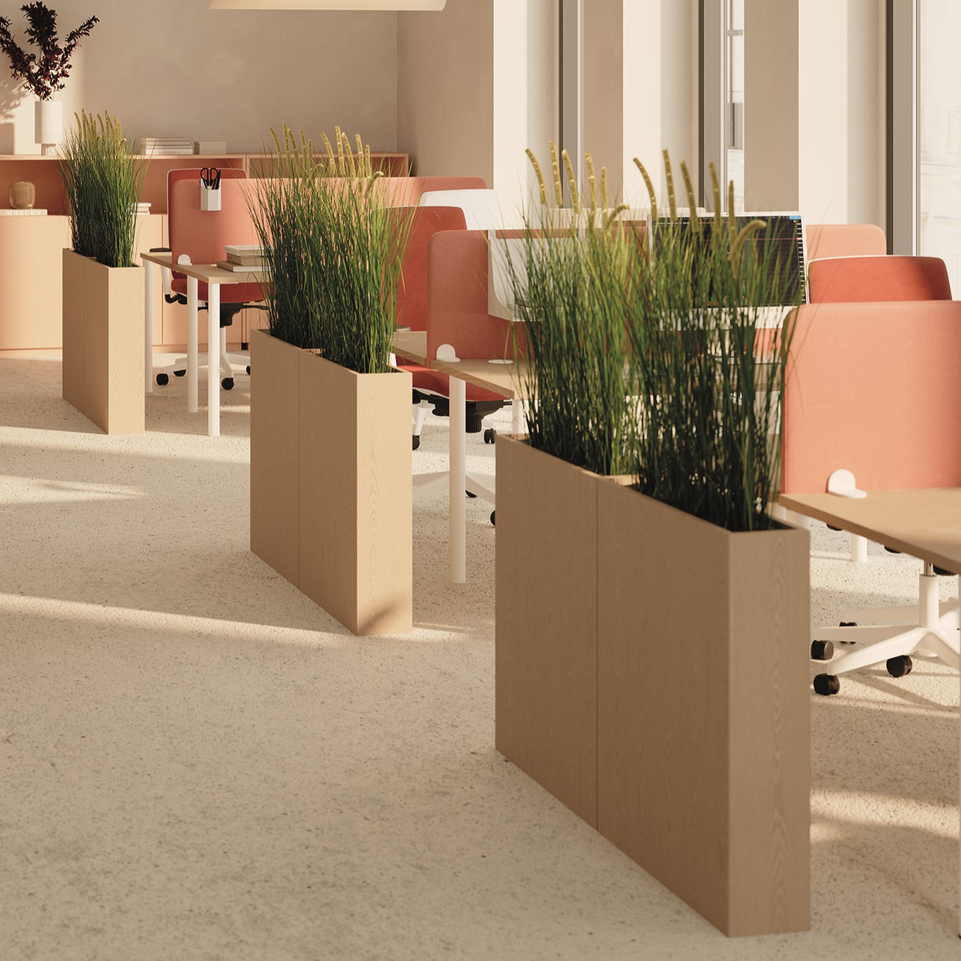 "Les bacs de séparation SPATIA permettent de séparer les espaces de travail où la convivialité rencontre la productivité"