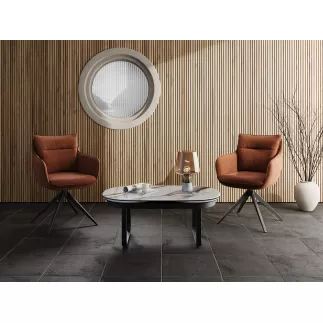 Le design et le confort s’invitent chez vous avec la chaise Belfast. Ce modèle est habillé d’un tissu 100% polyester, conçu pour durer dans le temps. Ce revêtement résiste aux frottements et au boulochage, il répond aux normes de sécurité européennes (flammes et cigarettes). Belfast mesure 60 cm de large, 62 cm de profondeur, 87 cm de hauteur totale et 48 cm de hauteur d’assise. Cette chaise est parfaite pour une utilisation quotidienne, elle est dotée d’une assise pivotante.