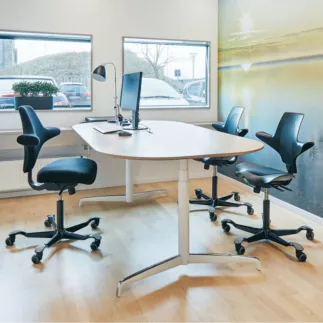 Equipée du mécanisme à bascule BalancedMovementTM, assise en forme de selle pour une position assise, semi-assise, debout, latérale ou à califourchon, aide à maintenir une bonne position assise et soulage la région lombaire, réglage de la hauteur de l'assise en continu, profondeur d'assise réglable, dossier réglable en hauteur, piètement en plastique à 5 branches, roulettes pour sol dur, largeur de l'assise 470 mm, hauteur 470 - 655 mm, profondeur 340 - 420 mm, hauteur du dossier 460 mm. Poids: 13 kg. Garantie: 10 ans. Durabilité eco:plus: compostable, dégradable, construit pour être démontable, durée de vie du produit prolongée, énergie récupérée, recyclable, composant recyclé, teneur en déchets recyclés avant utilisation max. 70%, teneur en déchets recyclés après utilisation max. 100%, réduction des déchets, emballage respectueux de l'environnement. Certification: Nordic Ecolabel.