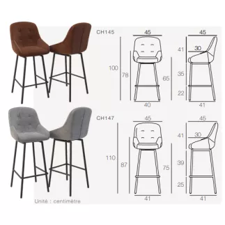 SAN FRANCISCO │Tabouret H115 cm - Assise pivotante 180° avec rappel│Tissus à choix