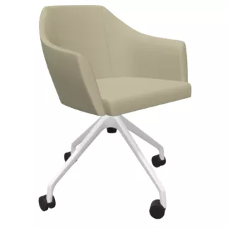 "Une chauffeuse de bureau qui conjugue confort enveloppant et savoir-faire tapissier local."