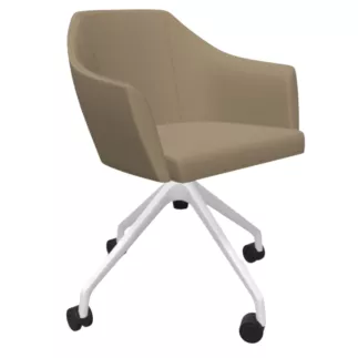 "Une chauffeuse de bureau qui conjugue confort enveloppant et savoir-faire tapissier local."