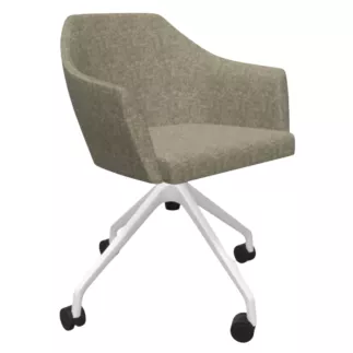 "Une chauffeuse de bureau qui conjugue confort enveloppant et savoir-faire tapissier local."