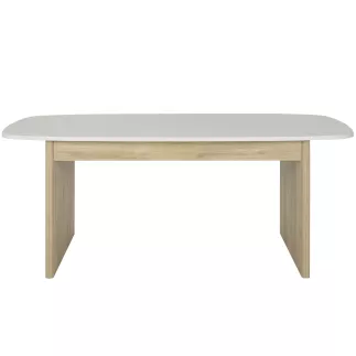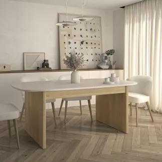 La forme du plateau de la table est arrondie et rappelle les formes oblong très moderne.