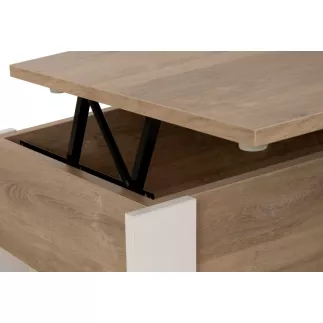 Plateau relevable pour transformer la table basse en table repas d'appoint. Idéal pour manger assis dans son canapé!