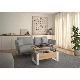 La table basse DENVER dispose d’un plateau relevable astucieux qui transforme facilement votre salon en un espace repas pratique et confortable, accessible directement depuis votre canapé.