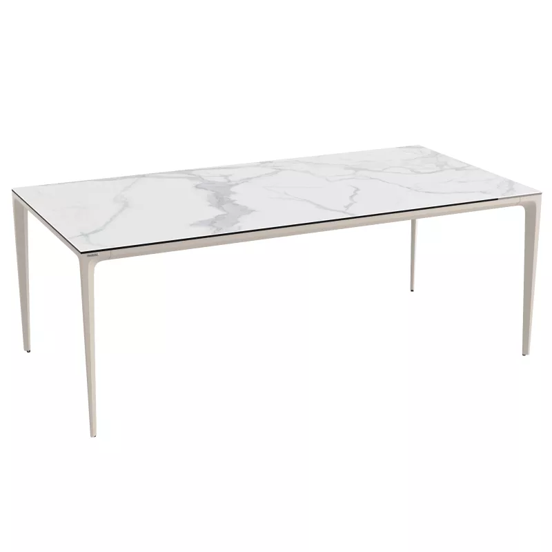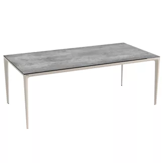 Sobre et chic, la céramique de la table de repas Mallorca dépose un certain cachet sur votre terrasse. Accompagnée de son piètement gris, l’accord des couleurs est parfait. L’ensemble de la table est pensé pour faire face aux temps extérieurs.
