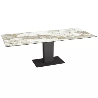 Cette table de repas/conférence vous propose une belle surface, vous permettant de recevoir aisément. Sa forme rectangulaire équipée d’un plateau en céramique apportera de la chaleur à votre intérieur. La céramique fait 3 mm d’épaisseur et est collée sur un vitrage de 8 mm. Son piétement central est en acier laqué noir et mesure 76 cm de hauteur.