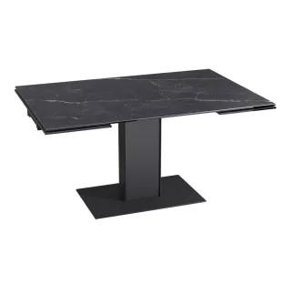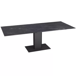 Cette table de repas/conférence vous propose une belle surface, vous permettant de recevoir aisément. Sa forme rectangulaire équipée d’un plateau en céramique apportera de la chaleur à votre intérieur. La céramique fait 3 mm d’épaisseur et est collée sur un vitrage de 8 mm. Son piétement central est en acier laqué noir et mesure 76 cm de hauteur.