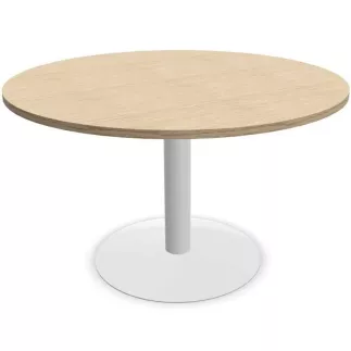 Cette table ronde séduit par son design moderne et épuré, parfaitement adapté aux environnements de travail contemporains. Son plateau finition bois (dont chêne Nebraska) associé à un pied central en acier, notamment en coloris blanc, apporte une touche élégante et professionnelle.