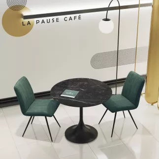 Couleur Plateau / Pieds: Plateau marbre calcatta ou marquina / Piétement Acier laqué noir mat