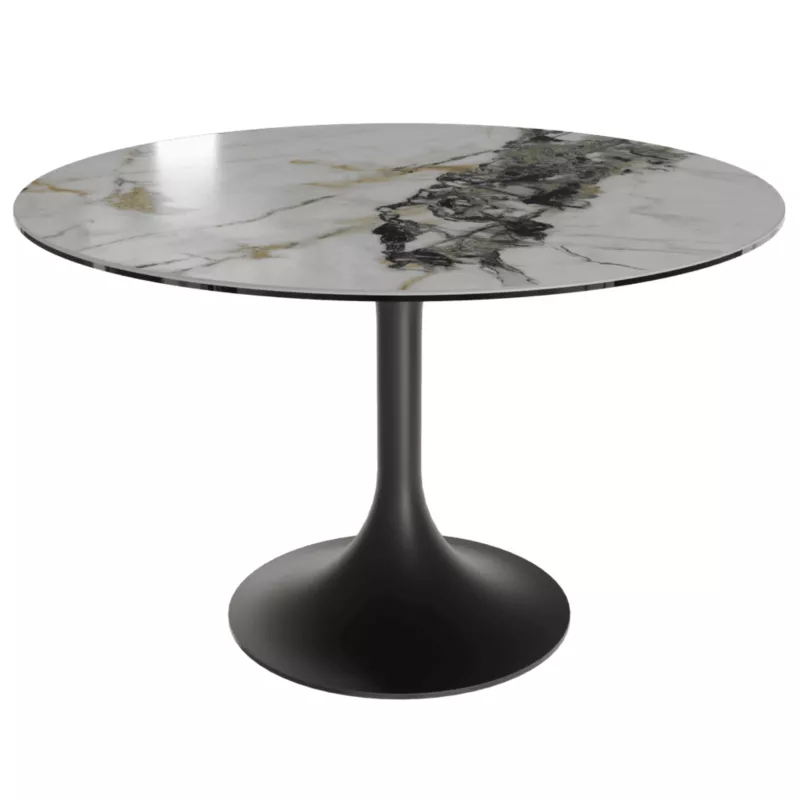 DIABOLO│Table ronde ø120 x H75 cm│Plateau marbre à choix/Piétement noir mat