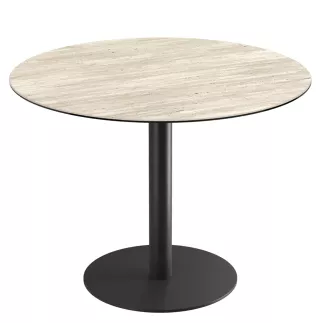 Orlando est la table ronde simple et tendance de 75 cm de hauteur avec un plateau en céramique de 3 mm d’épaisseur collé sur un verre de 8 mm. Son diamètre est de 100 cm. Son piétement en acier laqué noir mat s’alliera parfaitement d’en une décoration tendance, chic industrielle.