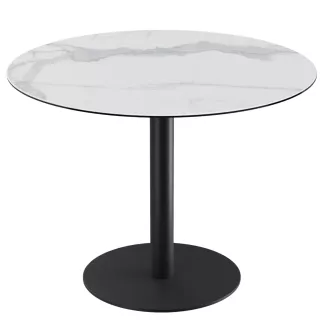 Orlando est la table ronde simple et tendance de 75 cm de hauteur avec un plateau en céramique de 3 mm d’épaisseur collé sur un verre de 8 mm. Son diamètre est de 100 cm. Son piétement en acier laqué noir mat s’alliera parfaitement d’en une décoration tendance, chic industrielle.