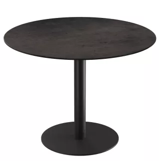 Orlando est la table ronde simple et tendance de 75 cm de hauteur avec un plateau en céramique de 3 mm d’épaisseur collé sur un verre de 8 mm. Son diamètre est de 100 cm. Son piétement en acier laqué noir mat s’alliera parfaitement d’en une décoration tendance, chic industrielle.