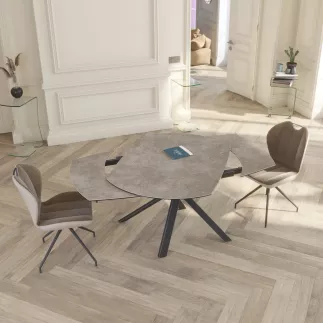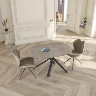 Grâce à son plateau en céramique, la table de repas Kheops offrira une ambiance cosy et douce au cœur de votre salle à manger.