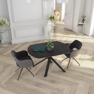Grâce à son plateau en céramique, la table de repas Kheops offrira une ambiance cosy et douce au cœur de votre salle à manger.