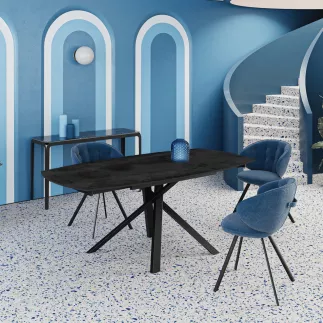 Informations: Fermée, elle mesure 130 cm, idéale pour les petits espaces, la cuisine ou encore en appartement. Vous pouvez l'agrandir jusqu'à 190 cm et déployer ses deux rallonges à chaque extrémité en faisant simplement pivoter son plateau central. Son piétement original en acier laqué noir mat est parfait pour apporter une touche design et moderne dans votre intérieur. Sa céramique, en provenance d'Espagne, mesure 3 mm d'épaisseur et est collée sur un verre de 8 mm pour garantir une table stable, facile d'entretien et réellement solide.