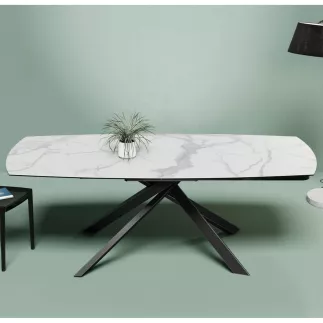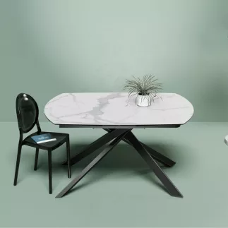 Informations: Le modèle Grande Kheops tout comme sa petite sœur possède un mécanisme synchronisé de deux rallonges latérales de 40 cm. Lorsque les rallonges sont fermées, le plateau mesure 1,60 mètre de long sur 1 mètre de large. Lorsque les rallonges sont ouvertes, le plateau mesure 2,40 mètres de long sur 1 mètre de large. Sa grande dimension vous permet d’accueillir jusqu’à 10 personnes. Ce modèle est conçu en céramique de 6 mm collée sur un verre de 8 mm. L’élégance de son piétement croisé conçu en acier laqué noir mat apporte robustesse et modernité.