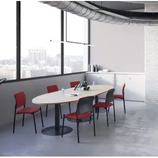 Pensée pour un usage intensif, la table ensemble forme ovale est dotée de plateaux mélaminés résistants, faciles d’entretien et conçus pour durer. Sa structure reposant sur trois pieds centraux garantit solidité, fiabilité et longévité, même lors de réunions prolongées et répétées.