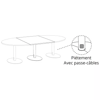Les 4 pieds centraux assurent une stabilité renforcée sur toute la longueur de la table, tout en libérant les zones périphériques pour une implantation optimale des sièges et un confort maximal des utilisateurs.