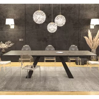 Notre table de repas Ascension de 190/270 x 100 x 76 cm est une fusion parfaite de design moderne et de praticité. Dotée de rallonges latérales repliables, cette table s'adapte à votre espace en un clin d'œil. La céramique apporte une note naturelle et chaleureuse à votre salle à manger ou à votre salle de conférence. Pour garantir une grande résistance, son plateau de céramique de 3 mm d’épaisseur est collé sur un verre 6 mm.